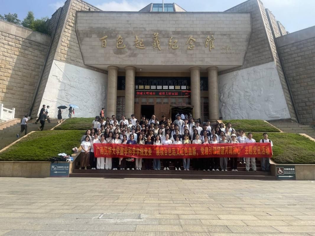 为传承红色基因、强化使命担当,10月18日,数学科学学院师生党员赴百色起义纪念园开展“赓续百色起义红色血脉,党建引领团建共筑初心”主题党日活动。学院党委副书记伍小花,学院团委书记张佳,辅导员程慧、刘国力及各党支部学生党员代表参加活动。